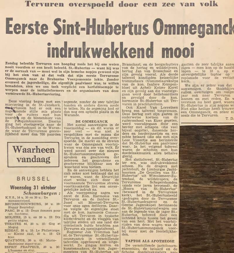 Lovend artikel uit een krant (welke ?) met een kortverslag van de eerste Sint-Hubertusommeganck