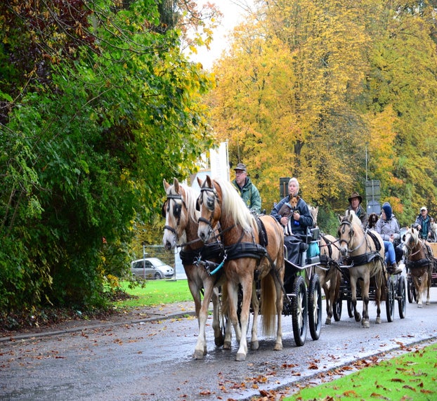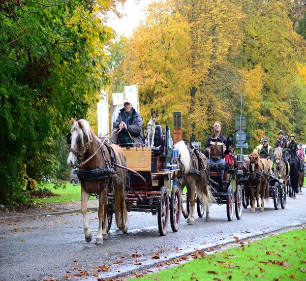 Ze 'draaien er rondjes' om de paarden in beweging te houden en de stoet te vormen.